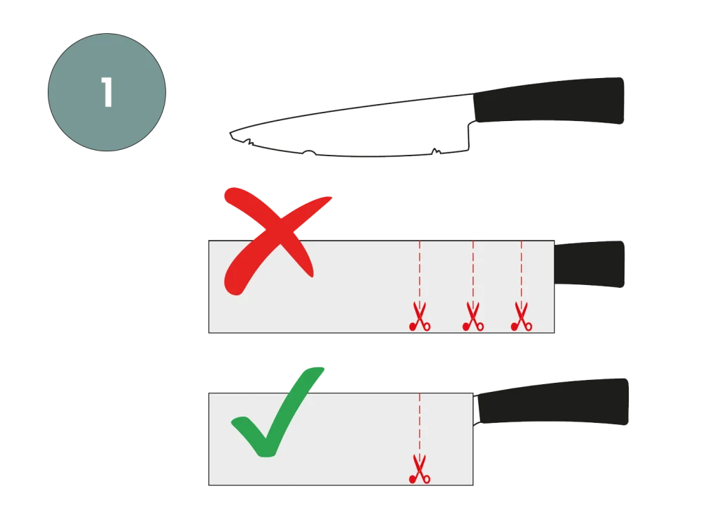Om du har 3-4 stycken långa knivar så är det bra att lägga knivarna i kors.