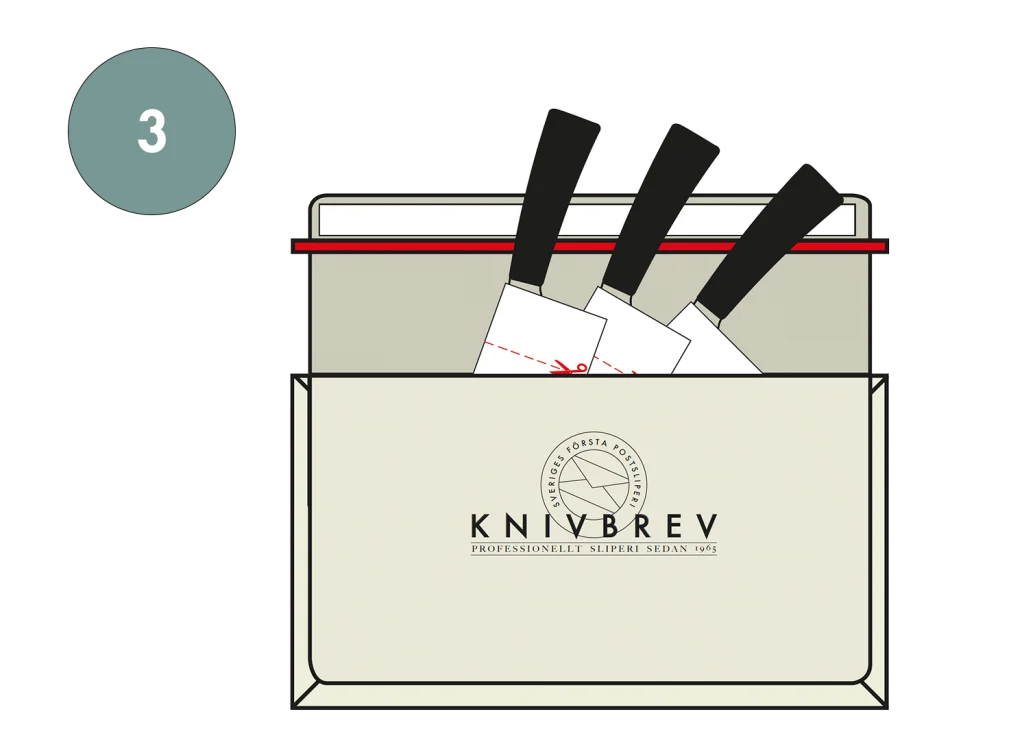 Över 350 000 knivar, saxar och andra föremål, i 10 000 -tals och åter 10 000 -tals Knivbrev fraktas årligen tryggt och säkert till och från oss i Täby för professionell grundslipning. Knivbrev är inte bara Sveriges utan även Världens största och modernaste sliperi med franchisetagare och dotterbolag i många Europeiska länder. All logistik hanteras med väl utvecklade rutiner och med stöd av vårt egenutvecklade IT -system, streckkodsläsning och tillhörande kvalitétsrutiner och stickkontroller.
