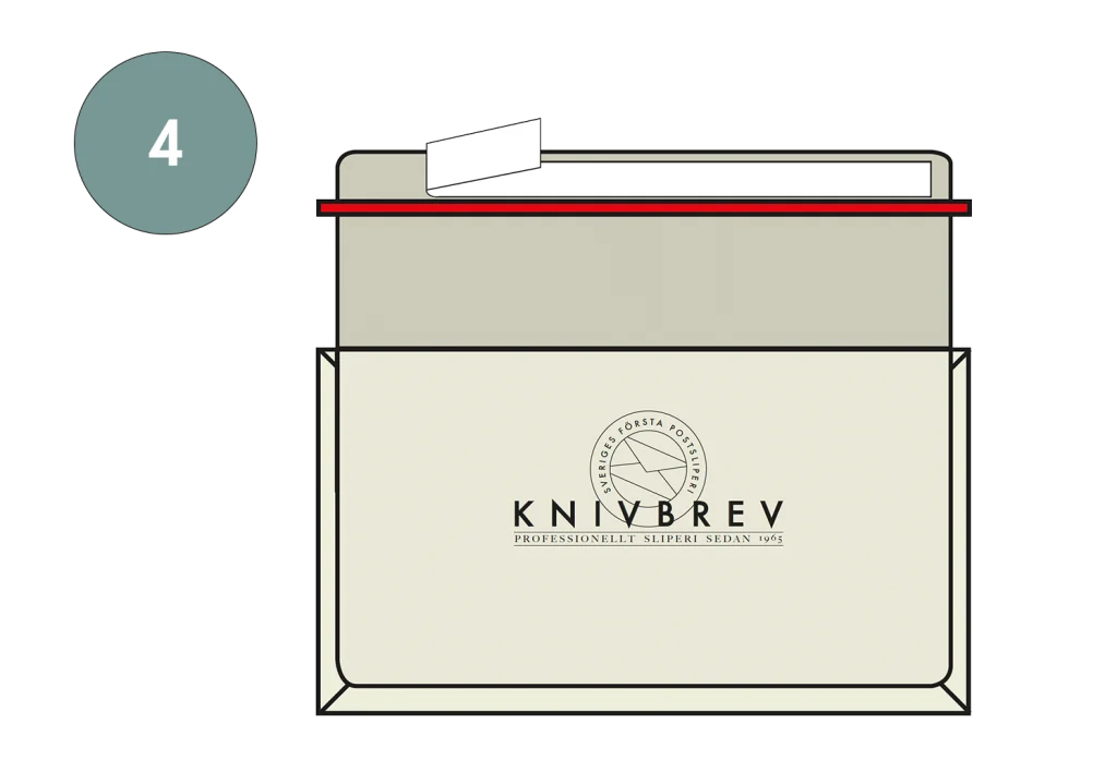Om du råkat göra ett misstag (missat att lägga i en kniv eller dylikt) och behöver öppna det igen så är det inte hela världen. Tejpa bara ihop det ordentligt med packtejp för säker transport så ser vi till att försluta brevet på samma sätt när vi returnerar det efter slipning.