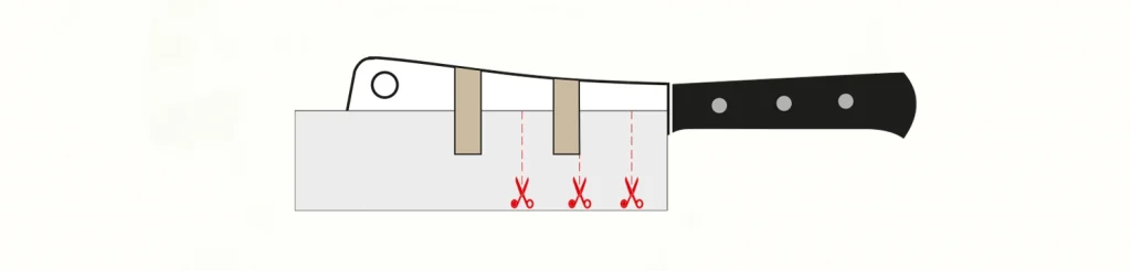 Om du vill skicka in höga knivar som exempelvis köttyxa så fäster du kniven som vanligt. Dock kan det vara bra att sätta ett par tejpbitar runt ryggen på bladet som fäster i skyddet så det håller sig stängt under transporten.